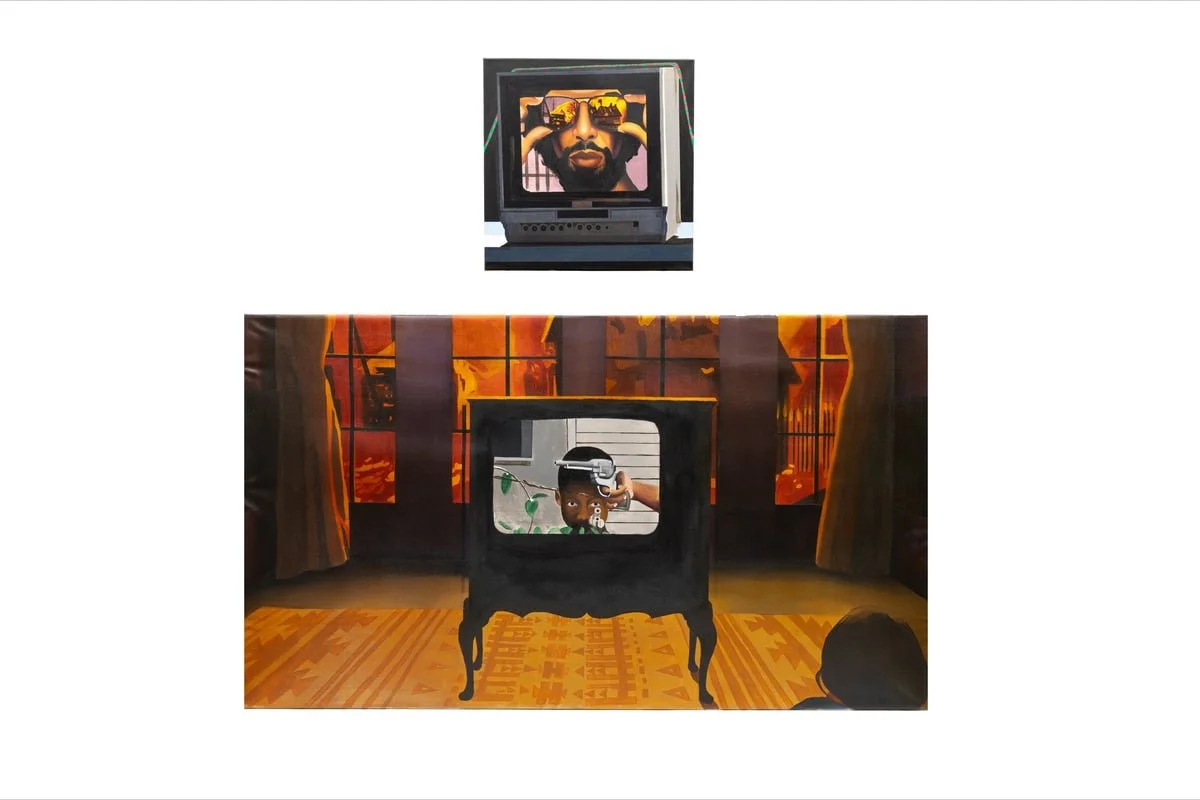 Telvin Wallace uses painting and film-based imagery to explore the intersections of justice, identity, and representation. His work often draws from cinematic scenes, news archives, and lived experience — reimagined through the lens of his community. Exploring how Black life endures inside systems designed to control it and how power decides who gets to be seen and how, Wallace’s practice is rooted in personal and regional history, reframing those narratives through imagery that speaks to resilience, memory, and the ways creativity survives even in the most restricted spaces. Hailing from a small town in North Carolina where opportunity was scarce but creativity was constant, Wallace understands the transformational power of art from places of self-empowerment and privilege; acknowledging that many of the people he grew up with never saw art until they went to prison, where it became a form of survival and self-recognition.